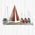 Our Marina Wall decor is a great coastal themed piece for large spaces. Three boats are docked in the forefront with a row of bungalows lining the horizon behind them. All finished in bright metallic paints.